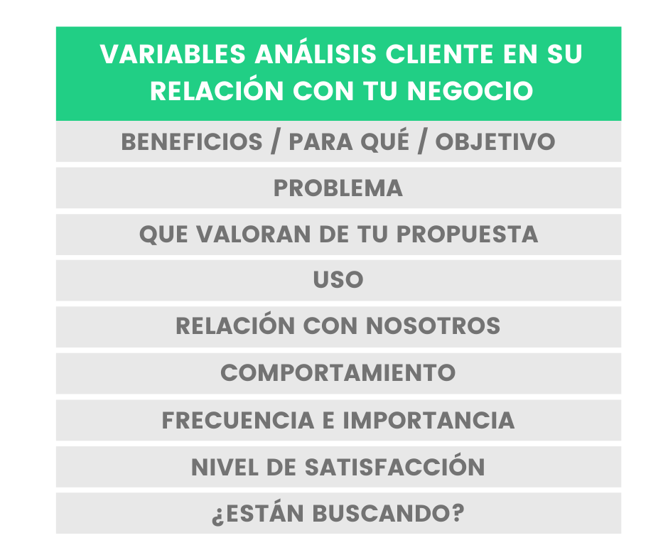 - Variables de análisis cliente en su relación con tu negocio
