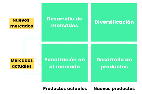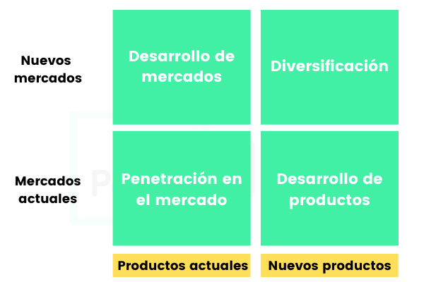 Hay empresas que buscan crecer dentro de su mercado actual y otras que quieren dirigirse a nuevos mercados. Por otro lado, algunas quieren ofrecer los productos que ya tienen y otras por el contrario incorporar productos nuevos.