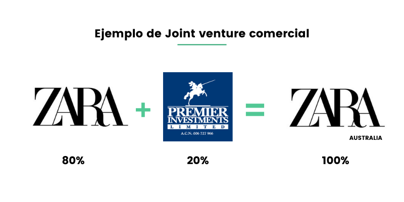 • Inditex: al querer entrar en el mercado australiano, decidió apoyarse en la empresa australiana Premier Investments para crear conjuntamente una Joint Venture.