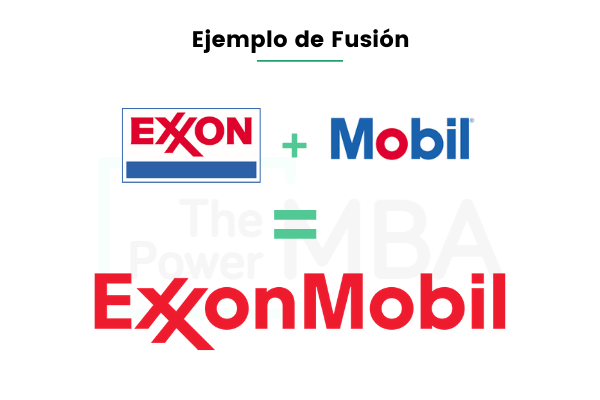 • Exxon y Mobil: las dos empresas americanas del sector petrolífero deciden llevar a cabo la fusión más grande de la historia. En este caso, desaparecen las dos empresas y aparece una nueva empresa: ExxonMobil.